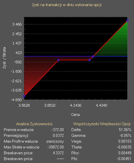 | MAksymalna strata | Cena wykonania kupionej opcji CALL - prowizje maklerskie +/- premia netto |